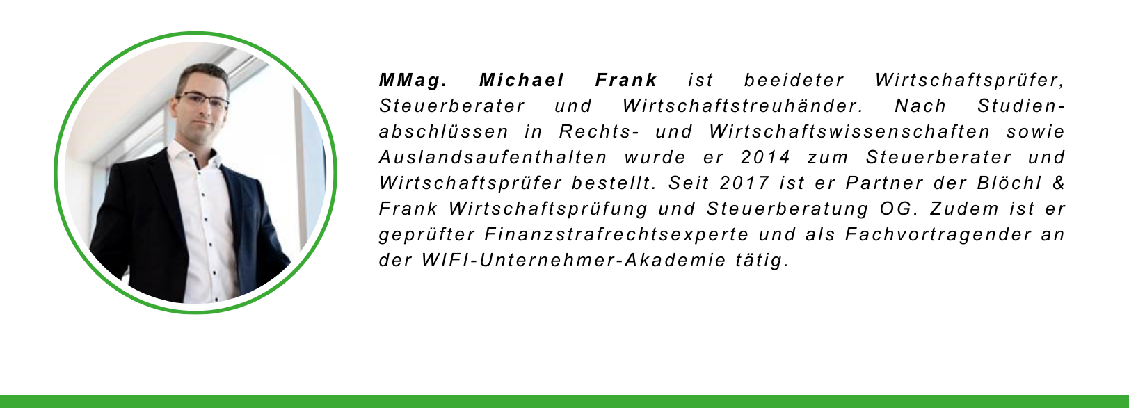 Das Firmenauto ist ein wichtiger Bestandteil Ihrer unternehmerischen Tätigkeit – aber auch ein erheblicher Kosten- und Steuerfaktor. In diesem Seminar erfahren Sie, wie Sie das steuerlich optimale KFZ für Ihr Unternehmen auswählen, die Auswirkungen der Luxustangente richtig einschätzen und die Unterschiede zwischen GmbH und Einzelunternehmen berücksichtigen. Mit klaren Fallbeispielen und praxisnahen Tipps lernen Sie, wie Sie teure Fehler vermeiden und mit der richtigen Entscheidung bares Geld sparen.