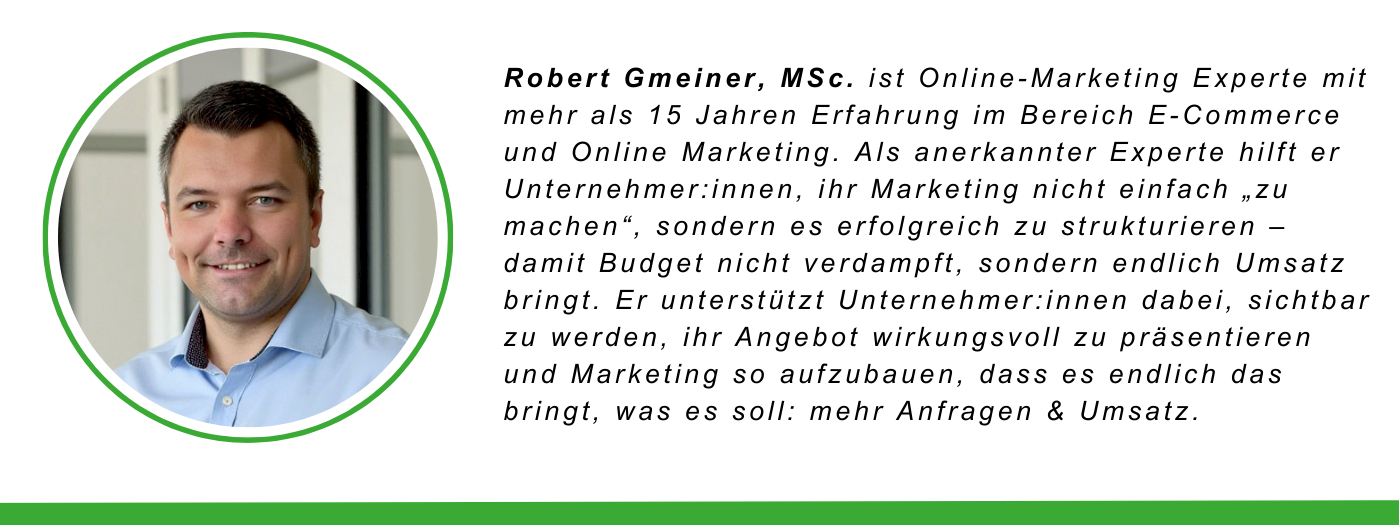 In diesem Online-Impuls erhalten Sie 7 konkrete Online-Marketing-Ideen, die 2026 mehr Wirkung zeigen. Sie erfahren, wie Sie Ihr Online-Marketing gezielter ausrichten, Klarheit in Ihre Maßnahmen bringen und konkrete Hebel für mehr Sichtbarkeit, Anfragen und Umsatz nutzen.