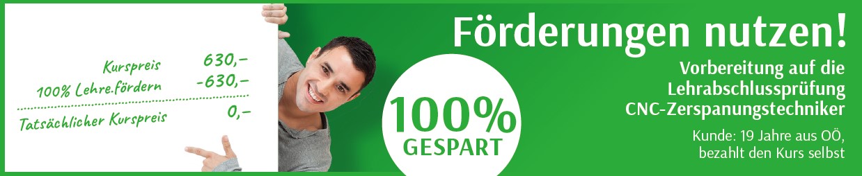 CNC-Weiterbildung und Intensivierung für Zerspanungstechnikerlehrlinge aus dem 3. und 4. Lehrjahr. Spezielle Vorbereitung auf die in diesem Lehrberuf sehr umfangreichen Prüfungsanforderungen.