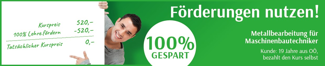 Nach dem Kursbesuch von „Metallbearbeitung für Maschinenbautechniker:innen (H1) und Metallbearbeiter:innen“ sind Sie optimal auf die Prüfungssituation bei der Lehrabschlussprüfung des Metallbearbeiters / Maschinenbautechnikers vorbereitet.